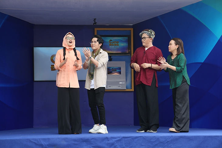 Vừa bước ra sân khấu, Phương Mỹ Chi liền bị Việt Hương, Đại Nghĩa và Huỳnh Lập hợp sức “ăn hiếp”. MC Việt Hương thì gọi nữ ca sĩ là “Phương Mỹ Chị” vì thấy em mặc áo bà ba và thắt thêm chiếc khăn trên đầu như các cụ ngày xưa. Không chỉ thế, nữ MC còn lớn tiếng hỏi bà con xem mình hay Phương Mỹ Chi trẻ hơn, thấy ai cũng bảo mình trẻ hơn khiến Việt Hương cười không ngớt.