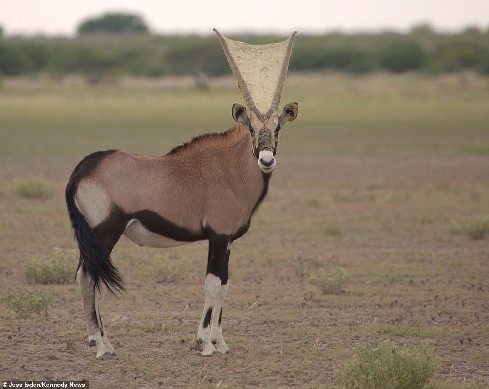 Một con linh dương đã khiến du khách kinh ngạc khi phát hiện mạng nhện đan dày đặc giữa hai sừng của nó - Ảnh: Jess Isden/Kennedy News