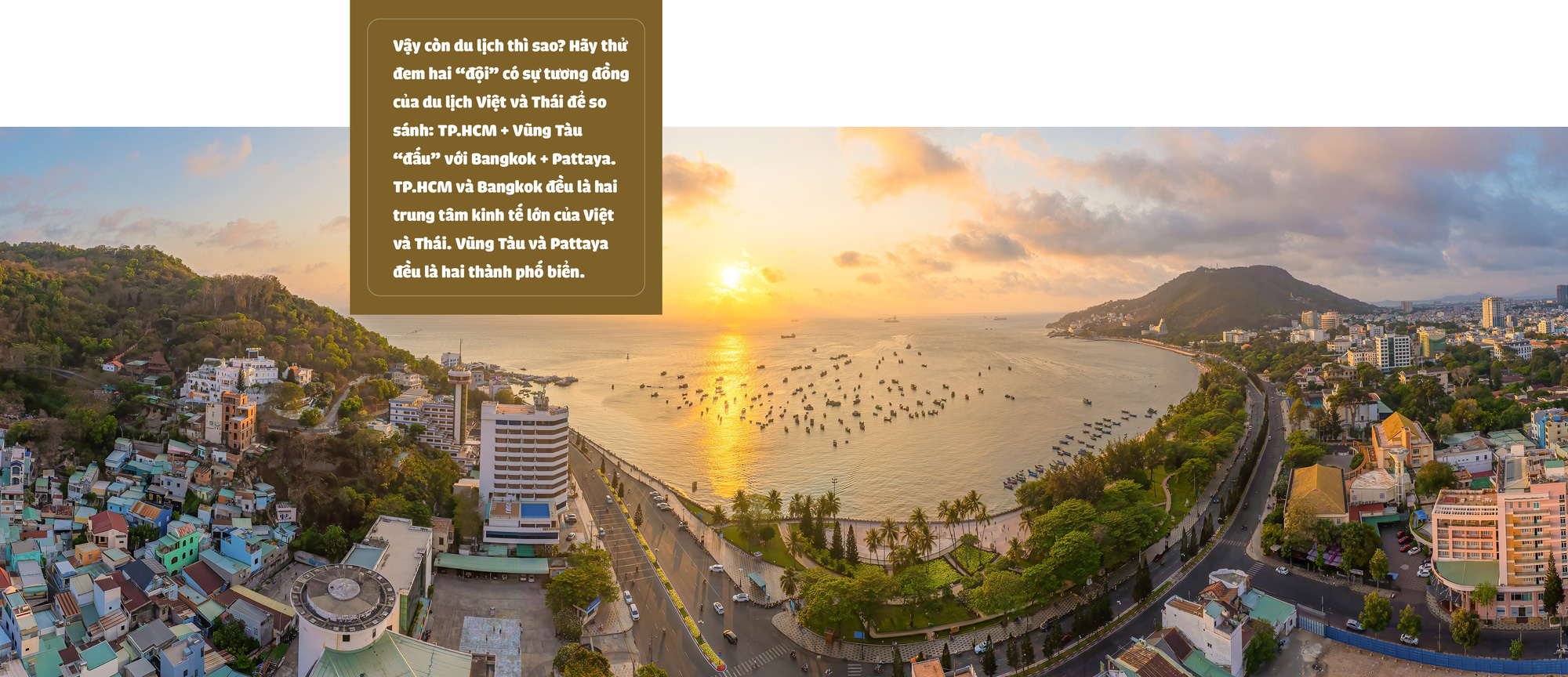 Về địa lý, khoảng cách TP.HCM và Vũng Tàu là 110km, Bangkok - Pattaya là chừng 150km. Nhưng kết quả thì ai cũng đã biết: "đội" Bangkok - Pattaya hoàn toàn vượt trội về du lịch.