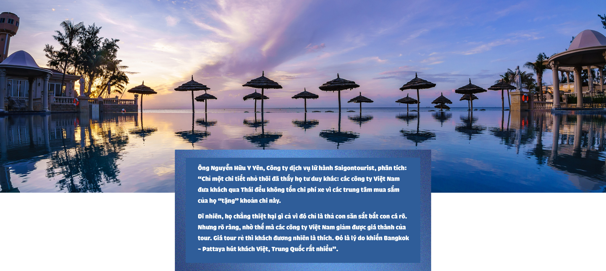 Thế là họ một đi không trở lại, bởi họ bảo không khách nào chịu nổi chuyện di chuyển 110km hết 4 tiếng. Trong khi đó, từ Bangkok đi Pattaya luôn ổn định 2 - 2,5 tiếng" - ông Nguyễn Ngọc Toản, CEO Công ty Image Travel & Event, kể.