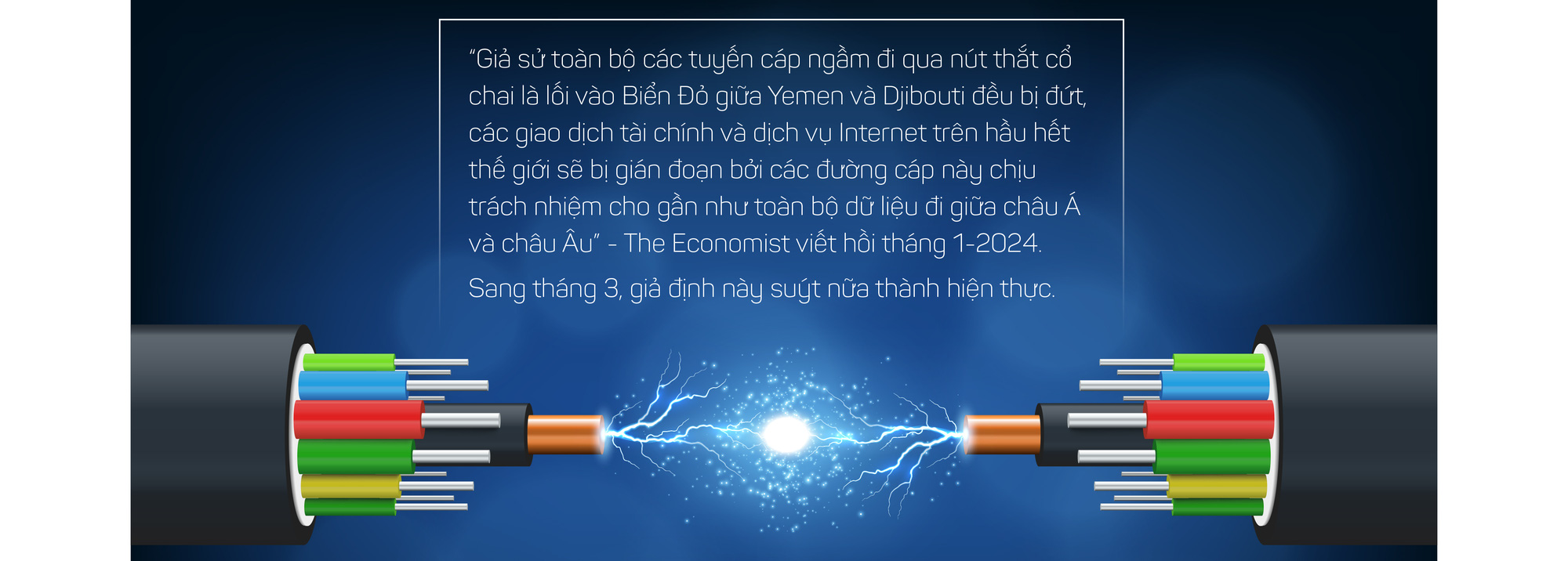 "Ba tuyến cáp dưới Biển Đỏ, cung cấp Internet và viễn thông toàn cầu, bị đứt do tuyến đường thủy này vẫn là mục tiêu của phiến quân Houthi ở Yemen", AP đưa tin ngày 5-3.