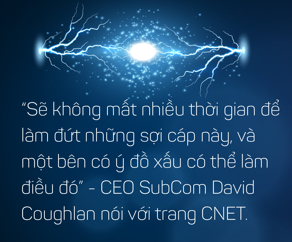 "Ngày nay người ta nói nhiều về việc không gian sẽ là lĩnh vực tranh chấp tiếp theo, nhưng tôi cho rằng dưới đáy biển mới là một khu vực cạnh tranh khốc liệt - CNET dẫn lời ông Steve Bowsher, chủ tịch In-Q-Tel, một công ty đầu tư mạo hiểm phi lợi nhuận do Trung tâm tình báo trung ương Hoa Kỳ (CIA) chống lưng để thay mặt các cơ quan chính phủ Mỹ đầu tư vào các công ty khởi nghiệp - Chúng (cáp biển) sẽ là mục tiêu cho bất kỳ cuộc đụng độ vật lý nào".