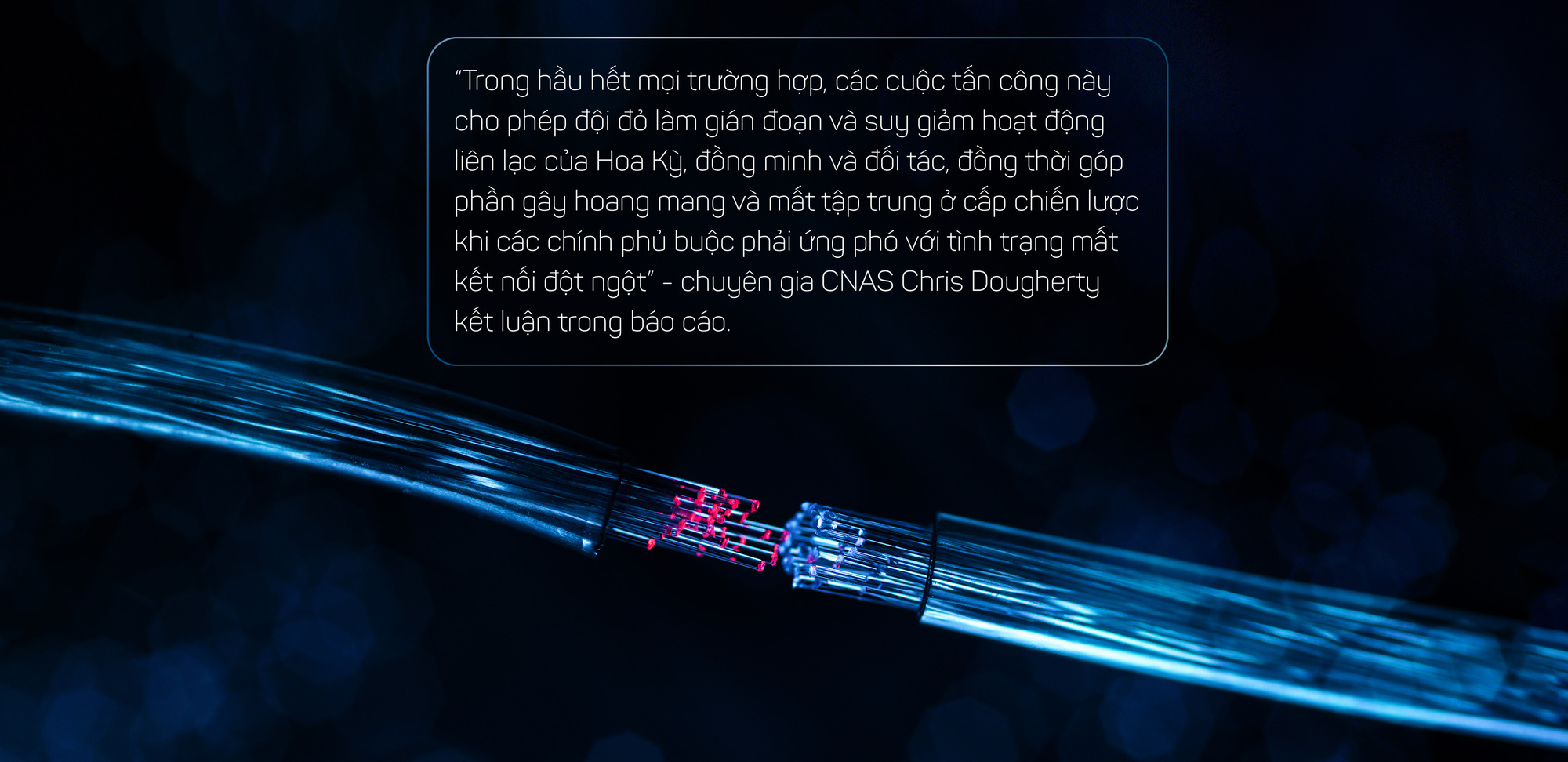 Trong trò chơi mô phỏng chiến tranh của CNAS, "đội đỏ" Trung Quốc và Nga đã tiến hành các cuộc tấn công mạnh mẽ vào các tuyến cáp dưới đáy biển.