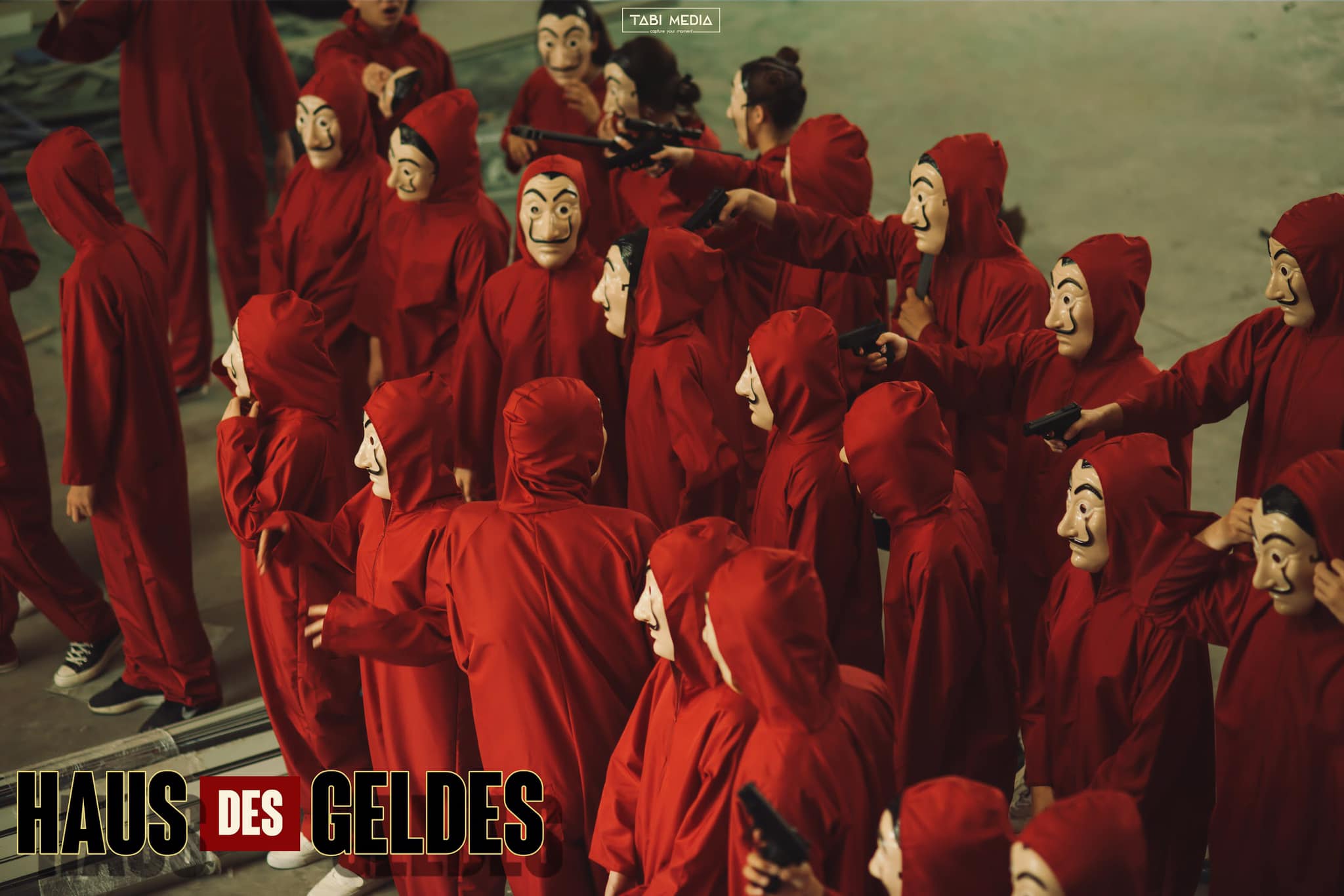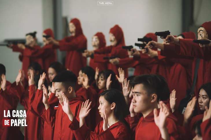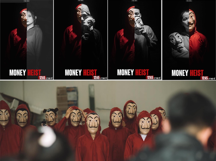 Nhắc đến Money Heist (tựa Việt: Phi Vụ Triệu Đô), ai nấy dõi theo series ăn khách này đều nhớ đến hình ảnh của những tên cướp áo trùm đỏ mang mặt nạ. Dựa trên concept này, các bạn học sinh lớp 12A5 trường THPT Lý Thái Tổ (Bắc Ninh) đã sáng tạo ra bộ ảnh độc đáo, giật ngay "spotline" trên đường đua kỷ yếu đang đi về chặng đích của niên khoá này.