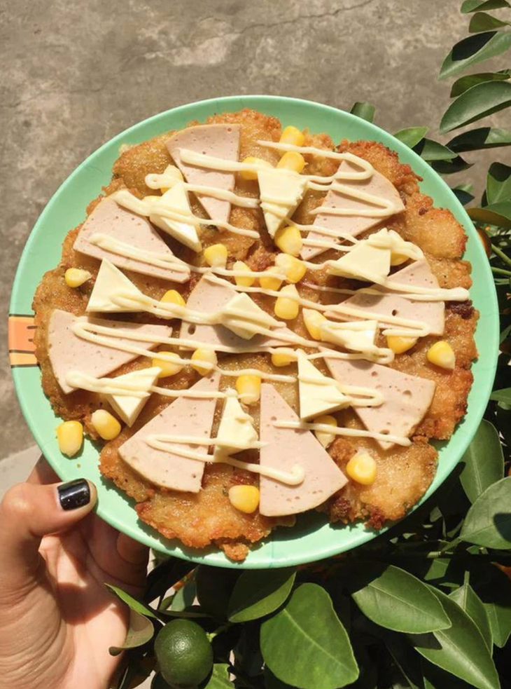 Hình ảnh thế này thì ai mà kiềm được... nước miếng chứ?!Tiếp theo đó là collection bánh chưng chiên/rán đủ kiểu, đủ mọi dáng hình, màu sắc. Năm nay, hot trend được dân tình theo đuổi chính là món "pizza bánh chưng" với độ sáng tạo cực... khủng. Theo đó, phần bánh chưng được trang trí với nhiều loại topping, sau đó, quết tương ớt lên phía trên để màu sắc và thêm phần giống chiếc pizza hơn.