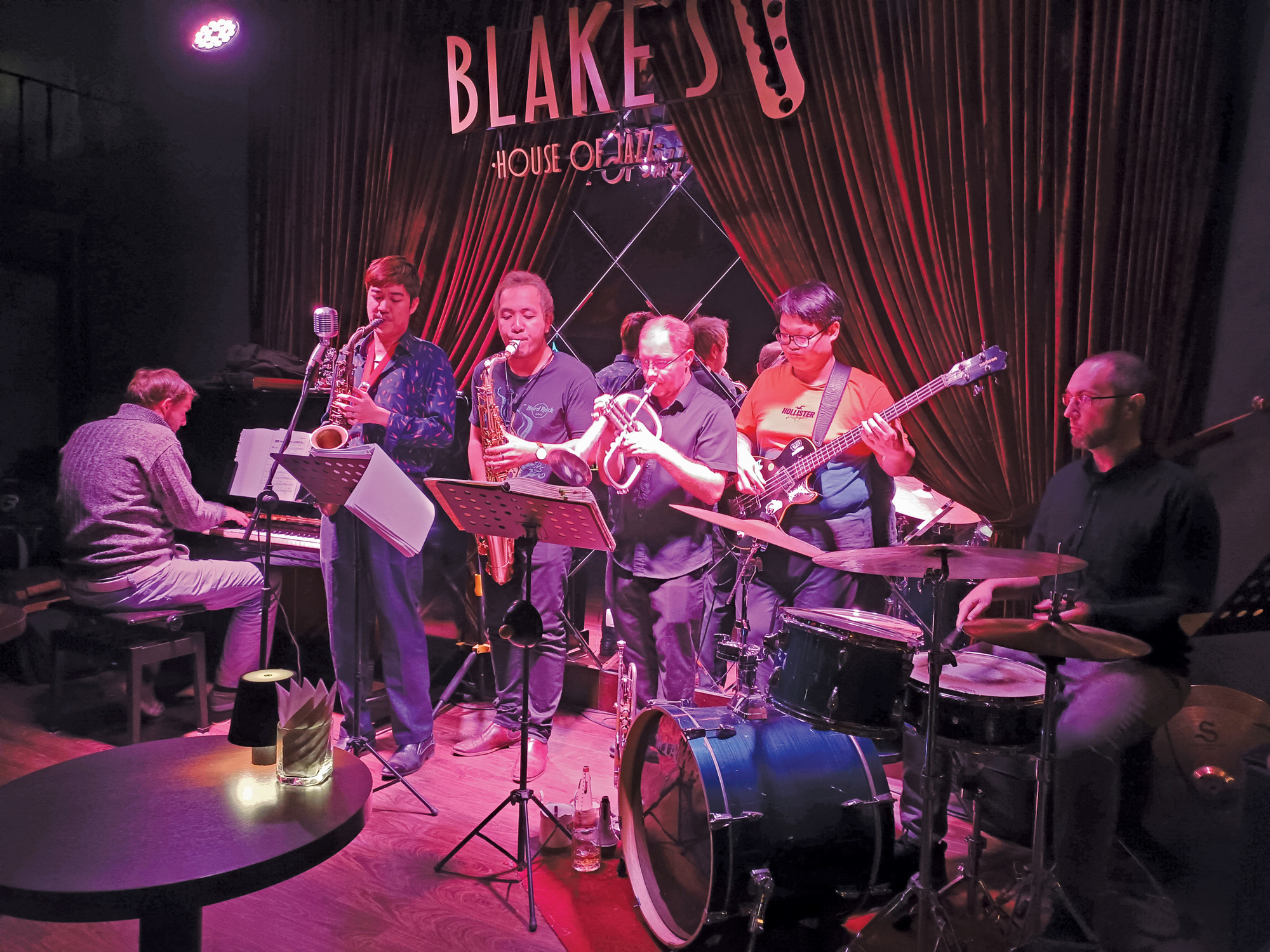 Có lẽ là giản dị thật, cả địa điểm cũng giản dị, không gian cũng giản dị, không có nhiều bài trí, chắc là để đôi mắt của những người tới đây không thể bị phân tâm đi đâu ngoài hướng về phía tấm màn sân khấu màu đỏ, sẽ được mở ra vào đúng 8h30, vào ngày thường là để chiếu các bộ phim tài liệu về jazz, và vào ngày cuối tuần là để ban nhạc chơi jazz.