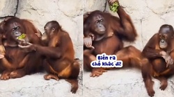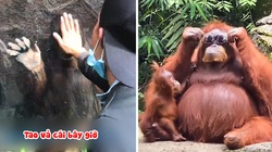 Đười ươi vỗ tay động viên nữ du khách ném chuối trượt