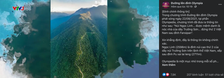 Tại Đường lên đỉnh Olympia tuần 1, tháng 3, quý IV phát sóng ngày 22-8, phần Olympedia của chương trình đã được đính chính bằng một thông tin như sau: "Ngọc Linh (2598m) là đỉnh núi cao thứ 2 của dãy núi Trường Sơn, xếp sau đỉnh Pu xai lai leng (2711m)", thay vì là "đỉnh núi cao thứ 2 Việt Nam, sau Fansipan" - đưa ra trong thời gian diễn ra thi.
