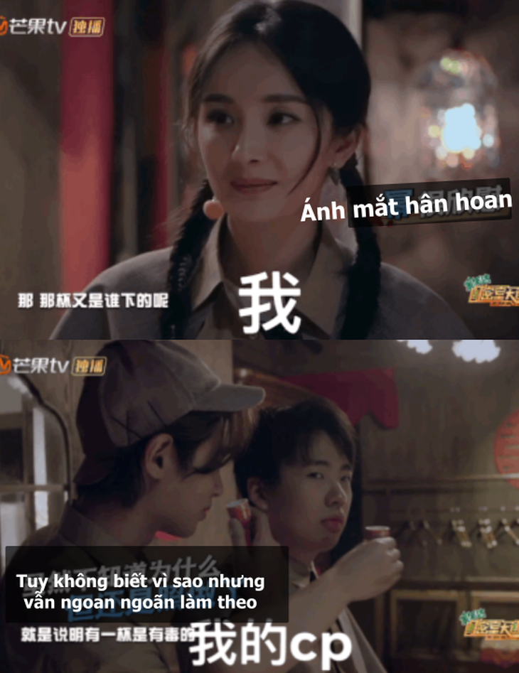 Đúng là dân trong nghề có khác, cái gì cũng nói đượcThậm chí, để giúp đàn anh dễ hiểu hơn, Dương Mịch đã lấy ví dụ như Đồng Tử Kiện thích Lôi Giai Âm và Lôi Giai Âm cũng thích em ấy. Chính là kiểu khi anh nhìn em ánh mắt khác với anh nhìn người khác.
