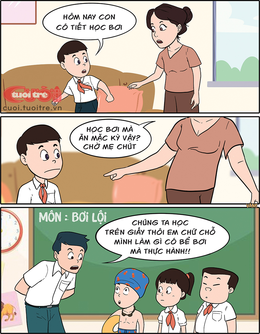 Em mặc áo sơ-mi đi học bơi