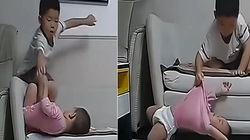 Thấy chị gái khóc, cậu bé liền đến động viên rồi khuyên bảo chị xin lỗi mẹ để được tha thứ.