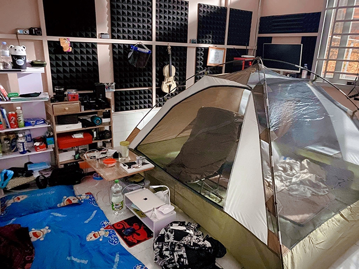 Bên cạnh đó, anh chàng còn dựng luôn lều cắm trại ngay trong phòng, suốt 14 ngày để được tận hưởng cảm giác "camping" ngay tại nhà.