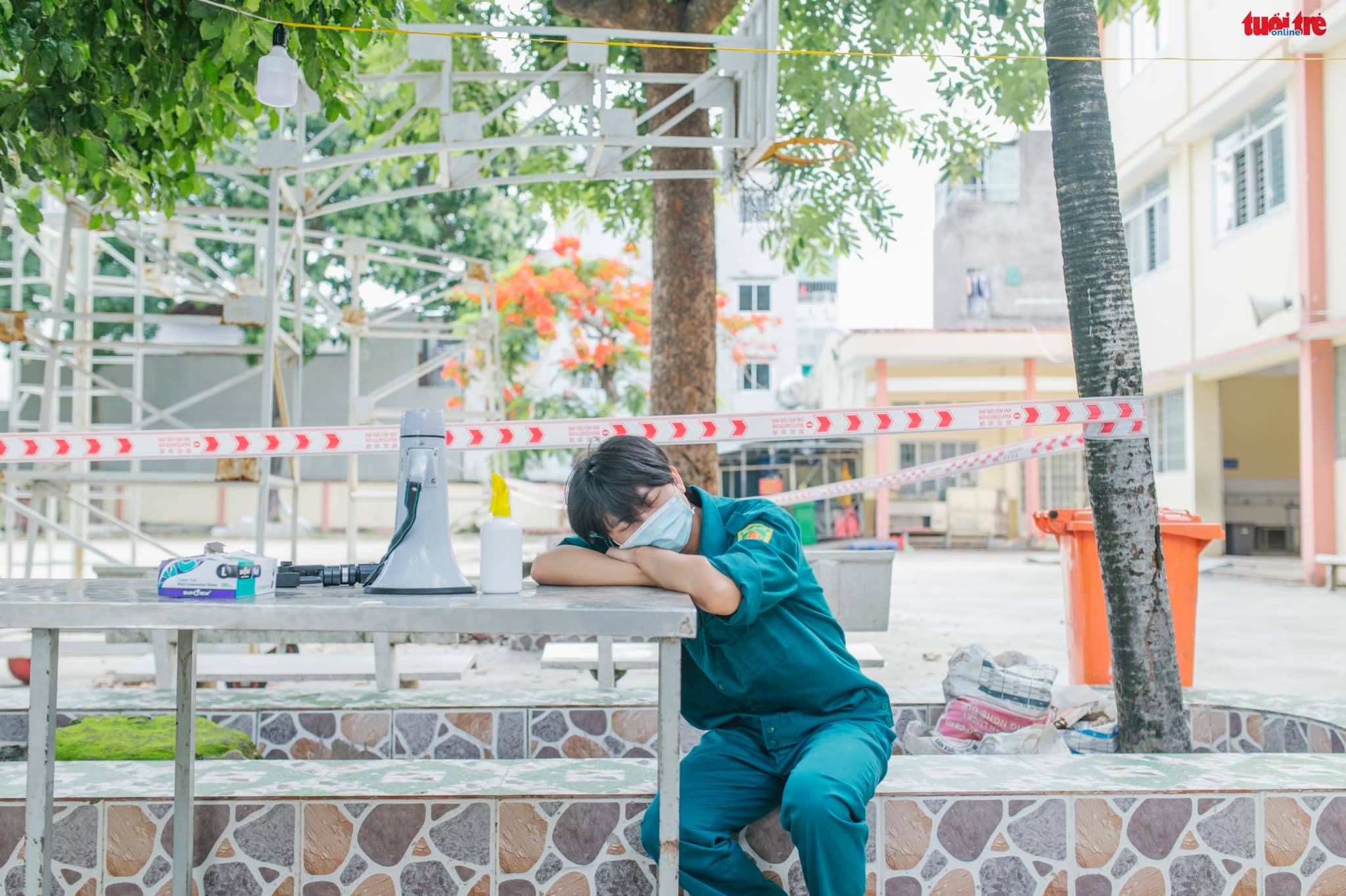 "Sau vài ngày thấy người nhà và cả bản thân có các triệu chứng như sốt, ho và mệt mỏi... mình đã báo lên cấp trên để xin phép kiểm tra COVID-19", Phạm Trí Thanh (hiện là giáo viên dạy nhạc cấp 1) - thành viên của đội dân quân tự vệ phường Bình Thọ (TP Thủ Đức) nhớ lại thời điểm nghi ngờ nhiễm bệnh.