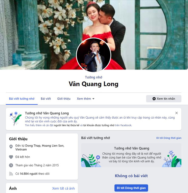Facebook của Vân Quang Long đã chuyển sang chế độ tưởng nhớThông tin ca sĩ Vân Quang Long qua đời đã khiến showbiz Việt lại rơi vào những ngày buồn đau.