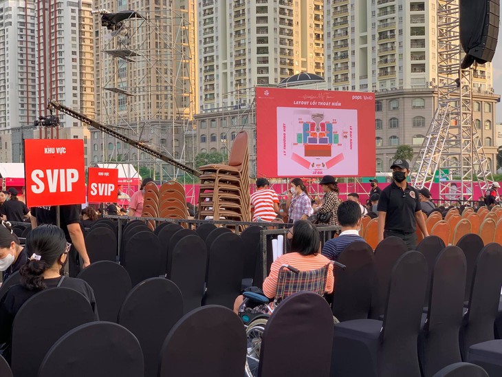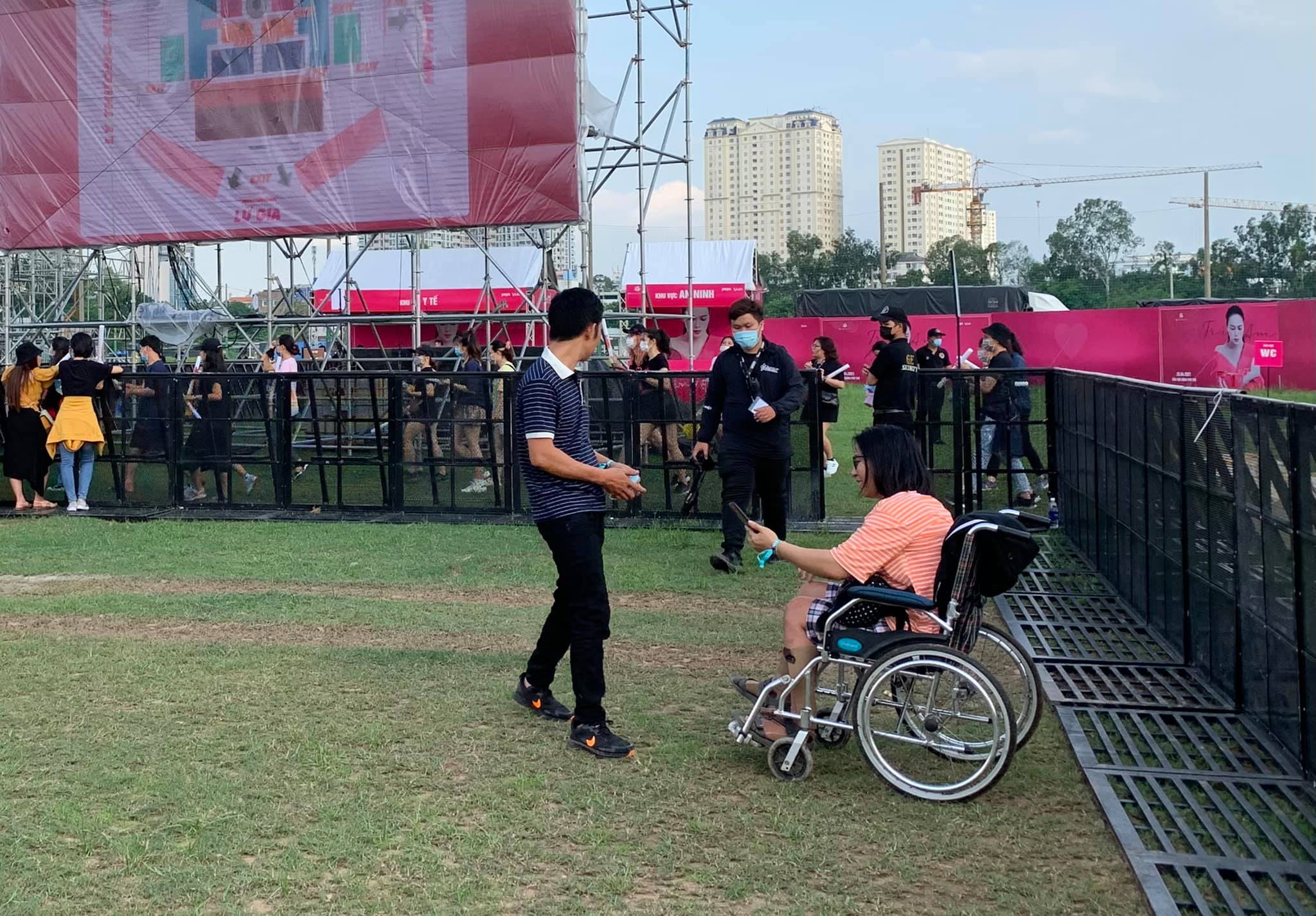 Vị khán giả đặc biệt ngồi xe lăn đã mua vé đến xem Tri âm gây chú ý (Ảnh: FB Thắng Đặng)Trong đó, có một khán giả đặc biệt ngồi xe lăn đến xem và nhận được nhiều sự quan tâm của ê-kíp thực hiện liveshow. Được biết, người hâm mộ đặc biệt này cũng đến sân vận động từ khá sớm và tỏ ra vô cùng háo hức dù không thể đi lại bình thường như nhiều người khác.