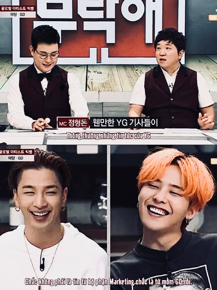 Đến đây, quả thực MC không thể bật cười thích thú với tính cách của các thành viên nhóm nhạc hàng đầu Kpop này được. Anh hào hứng hỏi: “Thế bây giờ mỗi lần muốn truyền tin thì phải mất bao lâu?” Ngay lập tức Taeyang ước chừng khoảng 5 tiếng còn chính “bà tám” GD đính chính rằng, nghe một cái phải lập tức đi kể liền.