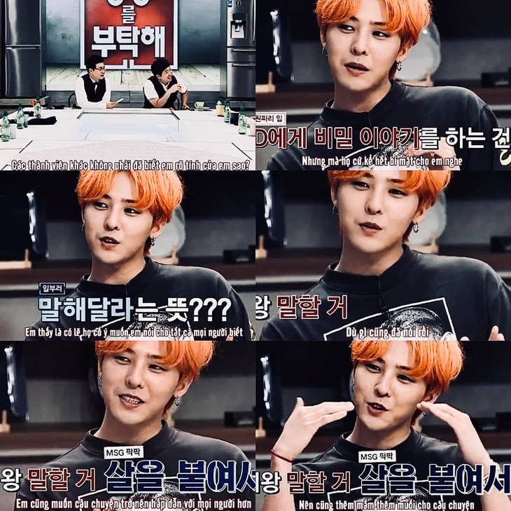 Mới đây trên diễn đàn giải trí Việt đã đăng tải câu chuyện và bức ảnh chụp lại màn đối thoại của các thành viên nhóm BigBang bao gồm: Taeyang và G-Dragon trong một talkshow cùng hai MC, thế nhưng cuối cùng lại thành "đại hội" bóc phốt trưởng nhóm.