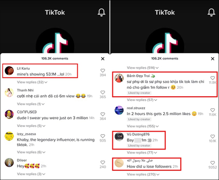 Tuy nhiên, chưa kịp vui mừng với màn "cà khịa" này thì Khaby đã bị tụt hẳn 1 triệu followers. Hàng loạt các tài khoản TikTok khác đã nhắn vào phần bình luận của "nam danh hài online" này, cảnh báo anh về việc số lượng người theo dõi bỗng bị... bay màu, nhưng không rõ nguyên nhân.