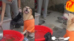 Gà trống kéo lồng vào chỗ mát để tránh nắng