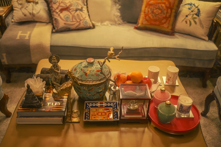 Căn phòng của chị cả Lý Lệ Hà mang tone chủ đạo màu vàng, thể hiện quyền lực, vị thế cao của người chủ gia đình và cũng là người phụ nữ có danh tiếng trong giới cổ vật.