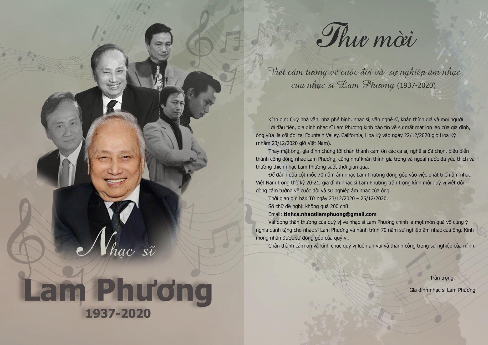 Gia đình mời viết về cuộc đời và sự nghiệp nhạc sĩ Lam Phương