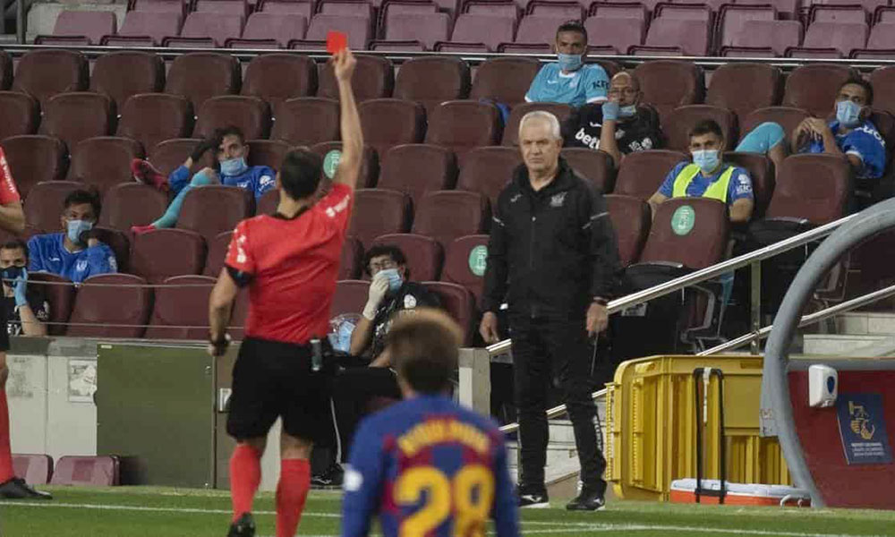 Khi thời gian trôi về những phút cuối, lúc này Barcelona đang dẫn trước Leganes 2-0, trọng tài chính đến khu vực kỹ thuật của Leganes, thẳng tay rút thẻ đỏ truất quyền chỉ đạo của huấn luyện viên Javier Aguirre. Nhiều người ngỡ ngàng không biết chuyện gì đã xảy ra, số khác thì nghi ngờ vị chiến lược gia này đã văng tục.