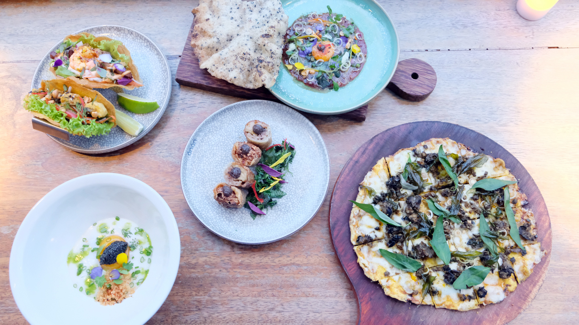 Cặp đôi ngồi sau chúng tôi dùng menu đó và trông có vẻ rất ngon. Về phần mình, chúng tôi dùng taco bò, pizza vịt và phở cuốn.