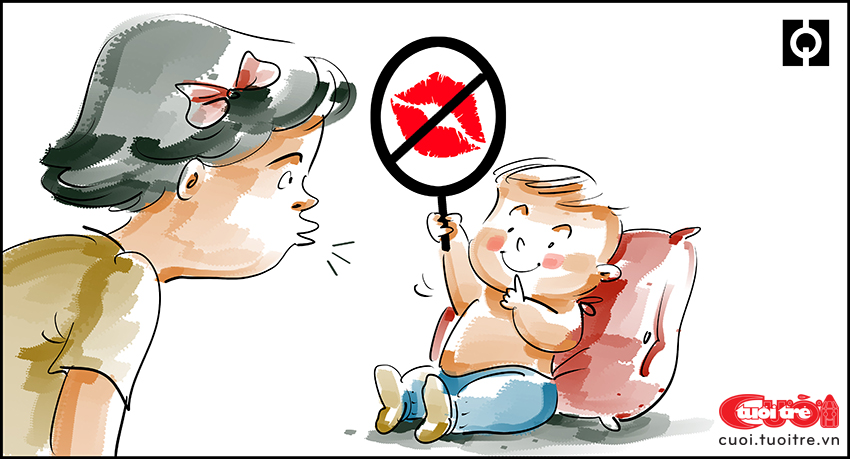 -Đáp:Trẻ sơ sinh thường ở nhà, nên người chăm sóc bé chỉ cần giữ vệ sinh sạch sẽ (nhất là bàn tay) trước khi chăm sóc, bế bồng bé là được. Người lớn tới thăm, không nên hôn hít bé, để tránh “lì xì” virus!
