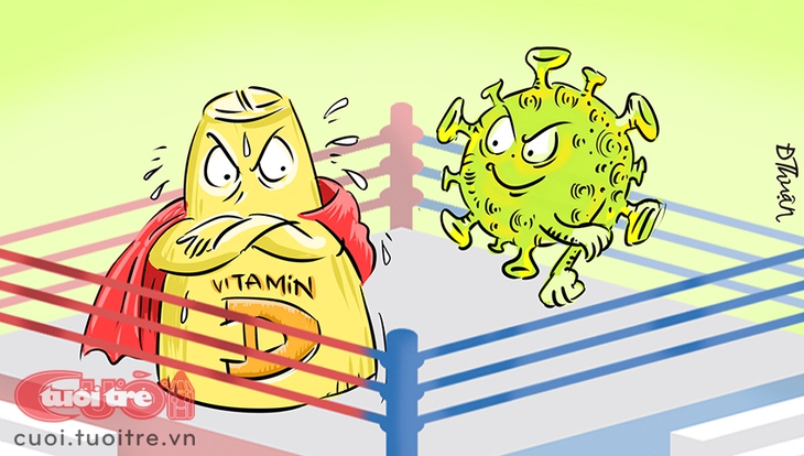 - Từ thuở hồng hoang, vitamin D nức tiếng là cánh tay mặt của miễn dịch, kẻ cùng chiến hào với đại thực bào... Phổi bệnh, nhờ vitamin D cũng khỏi nhanh hơn. Đây là cái lý, hơi bốc, người ta dùng giải thích việc dịch SARS-CoV-2 tệ quá thể ở một số quốc gia thiếu nắng, dân ngại ra nắng và nghèo hải sản. Vitamin D3, “chị đại” nhà vitamin D, chủ yếu ra lò từ cuộc hợp tác ánh nắng và tế bào da. Nói vậy, vitamin vẫn là vitamin, khó nâng thành thuốc chữa, chứ đừng nói thuốc tiên!