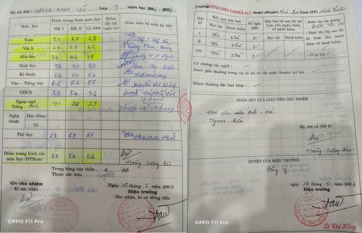 Cụ thể, điểm Toán, Văn năm lớp 7 của anh chỉ đạt 4,1 điểm. Trong khi đó, môn yếu nhất là tiếng Anh chỉ vỏn vẹn 3,2 điểm, buộc phải thi lại.