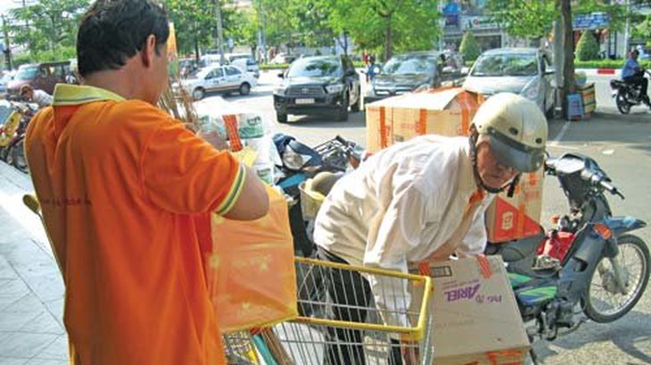 TTCT - Trên những chiếc xe máy cọc cạch, họ có mặt ở khắp các hẻm hóc Sài Gòn để chuyển hàng từ siêu thị, cửa hàng thức ăn nhanh, cửa hàng nội thất... đến tận tay khách hàng. Bất kể ngày đêm, nắng mưa, chỉ cần khách gọi điện thoại là những xế thồ di động ấy lại tất tả phóng đi. Phóng to Giao hàng đúng giờ, hàng hóa không bị hư hỏng luôn là một thách thức - Ảnh: T.T.D. Đang thiu thiu giấc ngủ trưa trên chiếc Future Neo Trung Quốc cũ mèm, nghe chuông điện thoại reo là ông Phạm Đình Lợi bật dậy, nhìn vào màn hình với nụ cười rạng rỡ: “Có cơm ăn rồi!”. “Cơm” ở đây là một mối chở hàng quen. Cả buổi sáng ngồi hết ngáp dài lại ngó nghiêng chẳng có ai đoái hoài, khi nghe gọi chở hàng ông lật đật gạt chân chống, đạp máy phành phạch rồi lao vút về phía trước. Từ hàng nội thất, điện máy... Ông Lợi vốn ở Quảng Ngãi đưa cả gia đình vào TP.HCM mưu sinh hơn chục năm nay. Lúc mới vào ông làm đủ nghề, từ khi mua được chiếc xe máy ông chuyển qua làm xe ôm, nhận chở hàng để kiếm thêm. Nhà ở quận 12, nhưng ông hoạt động ở khu vực đường Cộng Hòa và một số đường ở quận Tân Bình vì có nhiều mối quen ở đây. “Thường những đồ khó chở, cồng kềnh hoặc quá nặng người ta mới thuê mình. Nhiều khi phải còng lưng ra mà sắp hàng, nhưng vẫn phải chạy chứ không là chết đói” - ông Lợi chia sẻ. Mối quen của ông là những cửa hàng bán đồ nội thất, điện máy, gia dụng quanh khu vực đường Cộng Hòa, mỗi lần có khách là cửa hàng gọi điện. “Làm nghề gì cũng phải tạo được niềm tin, họ có tin mới giao hàng, giao tiền cho mình chứ không phải đụng đâu thuê đó. Bởi vậy dù nhiều lúc đang mệt, đang ngủ hay đang ăn, hễ có người gọi là phải vứt đó mà chạy chứ không mất mối”. Khác với ông Lợi, anh Đào Văn Thể chỉ chuyên chở hàng. Từ Bắc Giang vào TP.HCM với hai bàn tay trắng, anh làm đủ nghề để sống, chắt góp mãi mới mua được chiếc xe cà tàng để đầu quân cho công ty thực phẩm với chức vụ là... người giao hàng. Hơn một năm nay, cuộc sống của anh gắn liền với những tờ hóa đơn và con số, từ số điện thoại đến số nhà, số hẻm cho đến số hàng. Đồng hồ đeo tay và điện thoại là hai vật bất ly thân của anh, chúng có nhiệm vụ đo thời gian và vận tốc trên mỗi chuyến giao hàng. Đây không phải là một công việc khó, nhưng yêu cầu rất khắt khe về thời gian và phải là một người thật sự rành đường mới đảm nhận được. Làm nghề giao hàng rất cực, những ngày đầu không rành đường sá nên anh mất cả tiếng đồng hồ cho đoạn đường có vài kilômet. “Nhiều hôm khách giận đòi trả lại hàng mình phải đứng năn nỉ cả buổi. Rồi những hôm trời mưa đi giữa đường xe thủng bánh, vừa đẩy xe vừa giữ thùng hàng khỏi bị rơi, mặc cho mưa táp rát mặt. Những lúc đó chỉ muốn khóc” - anh Thể kể. Đi giao hàng mà gặp khách Tây hoặc khách sộp thì có thêm tiền bo. “Ngày nào gặp may kiếm được thêm 50.000-70.000 đồng, khi đó mọi mệt mỏi đều tan biến”. Phóng to Anh Thái Liên Trung chuẩn bị cho một chuyến giao hàng - Ảnh: Mỹ Thương Đến đua với thời gian và cả... tắc đường Trời đang hửng nắng bỗng nhiên mây đen kéo tới. Nhìn chiếc áo mưa sũng nước vừa mới phơi trên xe, chú Trần Ngọc Báu, nhà ở đường Phú Thuận, quận 7, không khỏi lo lắng: “Trời Sài Gòn mấy bữa nay lạ thiệt, mới đầu mùa mà mưa dễ sợ”. Khuấy ly cà phê đá đang tan dần, chú tâm sự: “Làm nghề này cực lắm, cả ngày ngồi ngoài đường với gió bụi, khi có khách gọi thì mưa nắng gì cũng phải chạy. Vậy mà tằn tiện lắm cũng chỉ đủ ăn”. Gần sáu năm nay, từ 7g sáng đến 8g tối chú Báu vừa làm xe ôm vừa giao kiếng cho các cửa hàng xung quanh khu vực ngã tư Lê Thánh Tôn - Trương Định, quận 1. Mỗi lần đi giao hàng như thế, gần thì chú được trả 20.000 đồng, xa như chợ Thủ Đức hoặc qua bến xe miền Tây thì từ 60.000-70.000 đồng. Những lúc xui rủi chạy xe dọc đường làm rơi kiếng phải bồi thường cho khách. Chủ tốt còn giảm cho đôi chút chứ nhiều người bắt đền cái kiếng cả nửa triệu đồng thì người giao hàng cũng phải chịu. Đối với Nguyễn Hữu Mỹ, sinh viên năm 3 Đại học Kỹ thuật công nghệ TP.HCM, nghề giao hàng là nguồn thu nhập chính. Mỹ chọn làm nhân viên giao hàng cho hệ thống cửa hàng thức ăn nhanh Lotteria. “Giao hàng là nghề đua: đua với thời gian, vận tốc, những tai nạn nghề nghiệp và nhất là phải đua với... tắc đường” - Mỹ giải thích. Hơn tám tháng làm cho Lotteria, Mỹ phải chạy đua từng ngày, nhà hàng mở cửa từ 8g sáng đến 10g đêm nên cứ đến ca là phải sẵn sàng chạy bất cứ lúc nào khách gọi điện, kể cả lúc mưa bão. Nói đến bão, Mỹ vẫn còn xanh mặt nhớ lại ngày chủ nhật 1-4 vừa qua khi cơn bão số 1 chuyển thành áp thấp nhiệt đới “quá bộ” vào TP.HCM. Đứng trong nhà hàng chỉ thấy tr