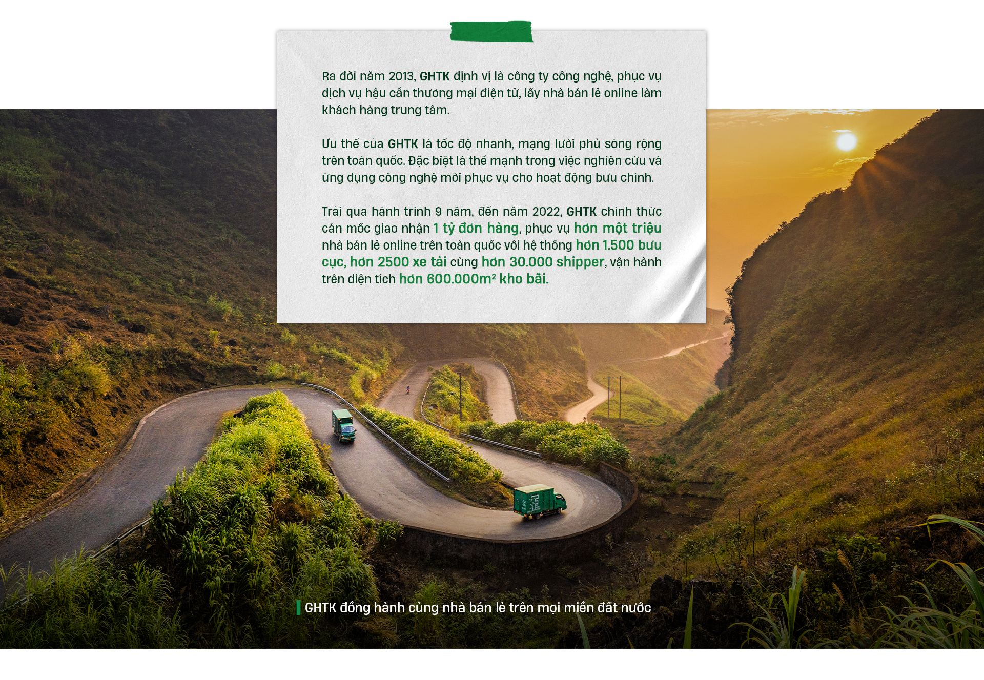 Hành trình 9 năm cung cấp dịch vụ giao nhận tại nhà, Giao Hàng Tiết Kiệm (GHTK) đồng hành với 1 triệu nhà bán lẻ online Việt Nam. GHTK kỳ vọng ai cũng có thể bán hàng online ngay trên chiếc điện thoại di động của mình.