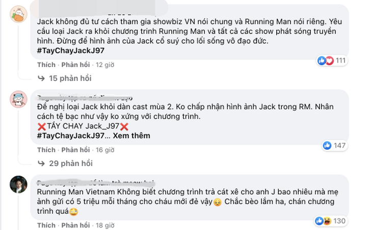 Đỉnh điểm nhất là fanpage Running Man Việt Nam mùa hai nhận bão phẫn nộ của cư dân mạng. Liên tiếp trong nhiều bài đăng gần nhất của chương trình đều nhận hàng trăm những bình luận lên án, tẩy chay Jack và yêu cầu ban tổ chức Running Man phải loại thành viên này ra khỏi đội hình.