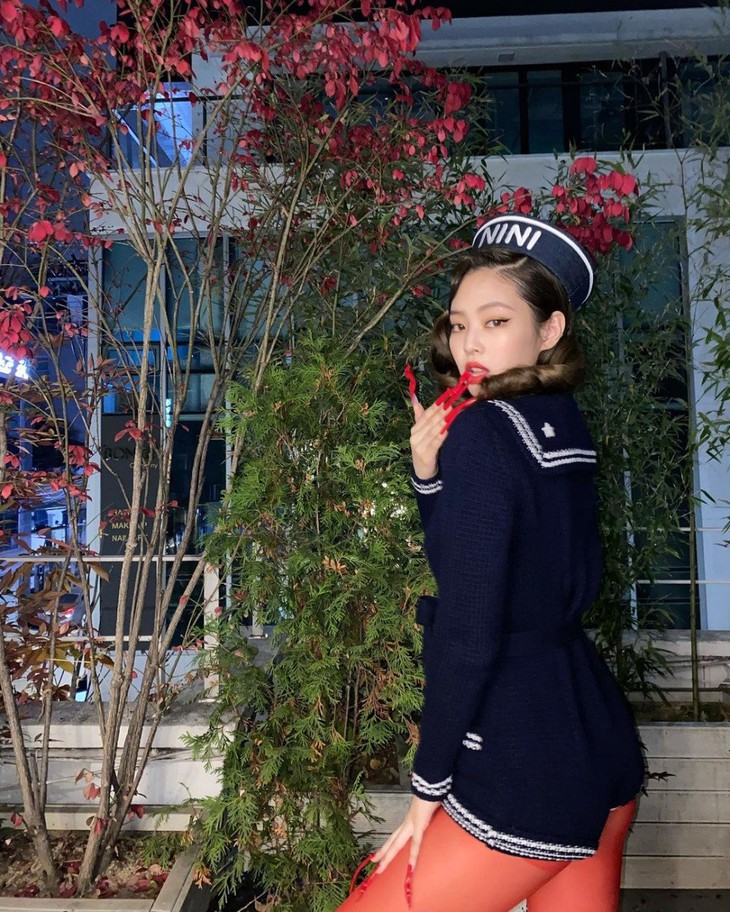 Tạo hình nữ thủy thủ nóng bỏng kèm bộ nail dài cực rùng rợn của Jennie gây chú ý.Bộ ảnh được cô chia sẻ trên Instagram kèm caption: “Xin chào tôi là Nini và tôi thích màu đỏ”. Trong bộ jumsuit cực ngắn phối tất da đỏ khoe trọn vóc dáng quyến rũ cùng ánh mắt hút hồn của “nữ thần” Blackpink.