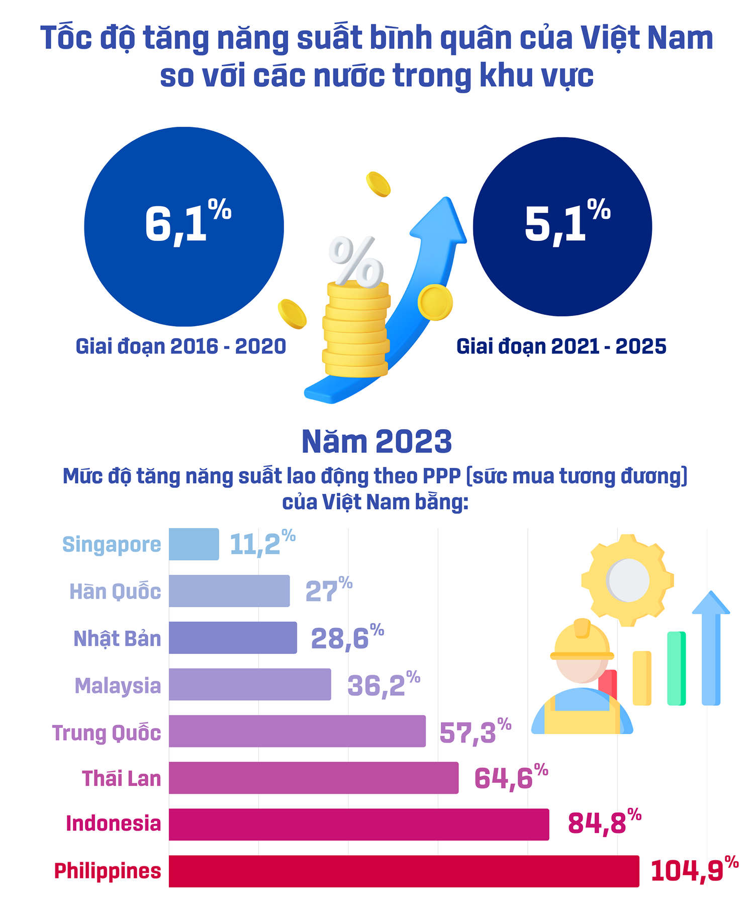 - Gia tăng năng suất lao động và năng lực cạnh tranh của nền kinh tế là yêu cầu xuyên suốt, hướng tới thực hiện mục tiêu tăng trưởng cao trên 10% trong giai đoạn tới. Các giải pháp nhằm gia tăng năng suất lao động và sức cạnh tranh của nền kinh tế sẽ là những giải pháp bao trùm, toàn diện.