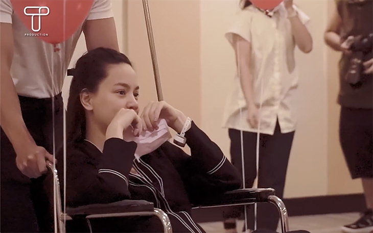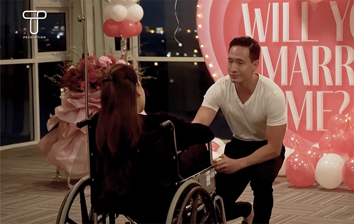 Trong đoạn clip, Hà Hồ được Kim Lý đẩy vào không gian căn phòng tại bệnh viện đã được anh cùng ê-kíp chuẩn bị từ trước. Nam diễn viên quỳ gối và nói lời yêu thương với người phụ nữ của đời mình.