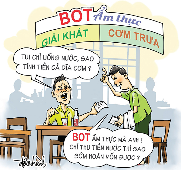 - Ô-kê, sột soạt tao nói soạt sột, đột quị tao nói quị đột thì đã sao. Mày không thấy miệng mồm quan chức còn nói ngược gấp tỉ lần mình sao. Chẳng hạn trạm thu phí BOT không đặt nơi đường tránh mà đặt trên quốc lộ, bị tài xế lẫn dân đen phản ứng dữ dội thì các quan bào chữa một cách ngược ngạo. Có quan còn khẳng định: Ngân khố Bộ Giao thông vận tải hết tiền nên không mua lại trạm thu phí mà cứ cho tư nhân đặt nơi chỗ cũ. Trời ạ, ở nước ngoài chỉ cần nghe tiếng rên của nhân dân là người ta đã sửa sai, thậm chí quan lớn phải từ chức. Còn ở nước ta, sai trật sờ sờ cỡ đó mà vẫn trơ trơ nói ngược mới ly kỳ. Bởi vậy tao thương mấy câu thơ của cô Năm Thi Sĩ vô cùng. Cô Năm nói: “Làm thơ đã rất ly kỳ - Nhưng làm quan lớn lại kỳ ly hơn”.
