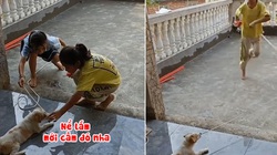 Hai chú chó làm cột cho cô chủ nhảy dây