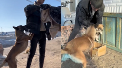 Cô chủ đóng giả bác sĩ thú y để khám chữa bệnh cho chó cưng khiến nhiều người xem thích thú.