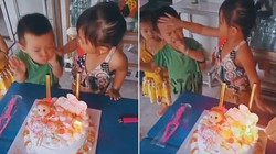 Nhân cơ hội trời tối khi cô chủ vừa thổi tắt nến, hai chú chó đã ăn gọn cái bánh gato đặt trên ghế.