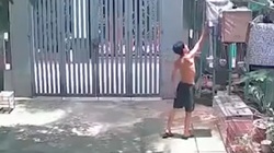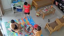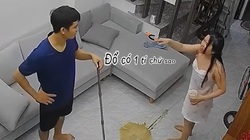 Con trai cười khoái chí khi xem bố trình diễn màn phun sữa vào mặt chú mèo Tom trong tivi bằng cái ống hút.