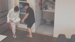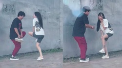 Trong giờ giải lao, hai nam thanh niên chơi trò 'đá gà' khiến mọi người được trận cười sảng khoái.