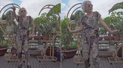 Hai cụ bà ngồi xe lăn chơi bóng bàn