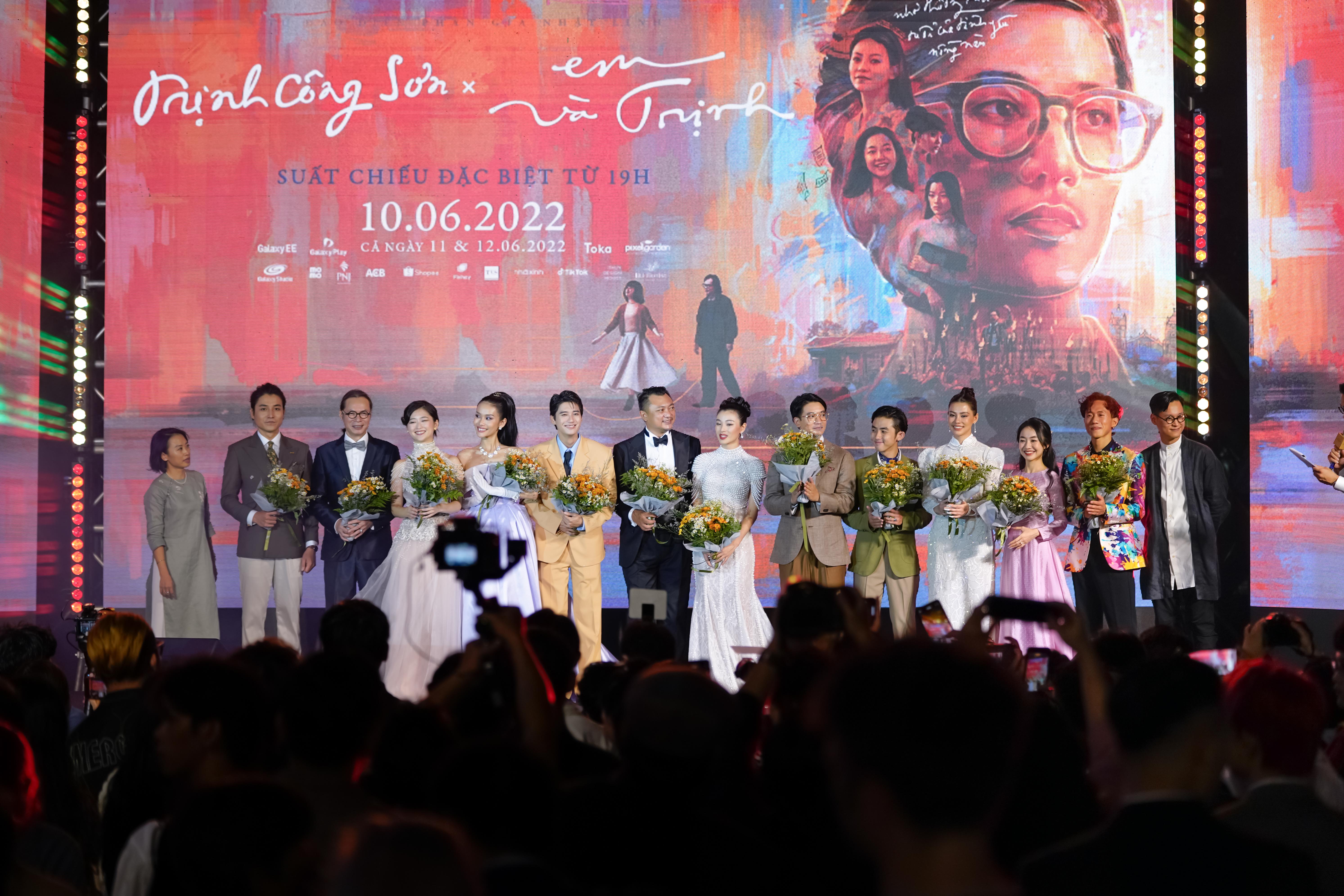Êkíp và diễn viên trong ngày ra mắt dự án phim về nhạc sĩ Trịnh Công Sơn.Điều đặc biệt hơn, gần như tất cả khách mời công chiếu đều không được biết trước mình sẽ xem phim Trịnh Công Sơn hay Em và Trịnh. Theo đó, khi đến dự sự kiện, khách mời được bốc thăm một cách ngẫu nhiên, trúng phim nào xem phim đó ngay trước khi bước vào rạp chiếu.