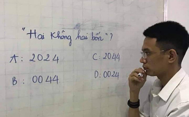 Câu đố "Hai không hai bốn viết thế nào?" đã nhận được hàng nghìn lượt chia sẻ và bình luận. Ảnh Facebook Hải Đại TrầnNhiều người chọn đáp án A và cho rằng: "Hai không hai bốn' chẳng phải là cách đọc của năm sao? 2024 - không chật vào đâu được".