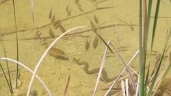 Thấy con rắn bơi về phía mình, hai người đàn ông đang tắm sông hú hồn hú vía, vừa bơi vào bờ vừa la hét um sùm.