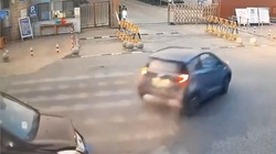 Sau pha va chạm, hai tài xế xuống xe nhìn nhau khó xử.