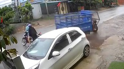 Hai thanh niên chạy xe máy lạng lách, đánh võng bất ngờ bị mất lái và ngã sõng soài xuống đường.