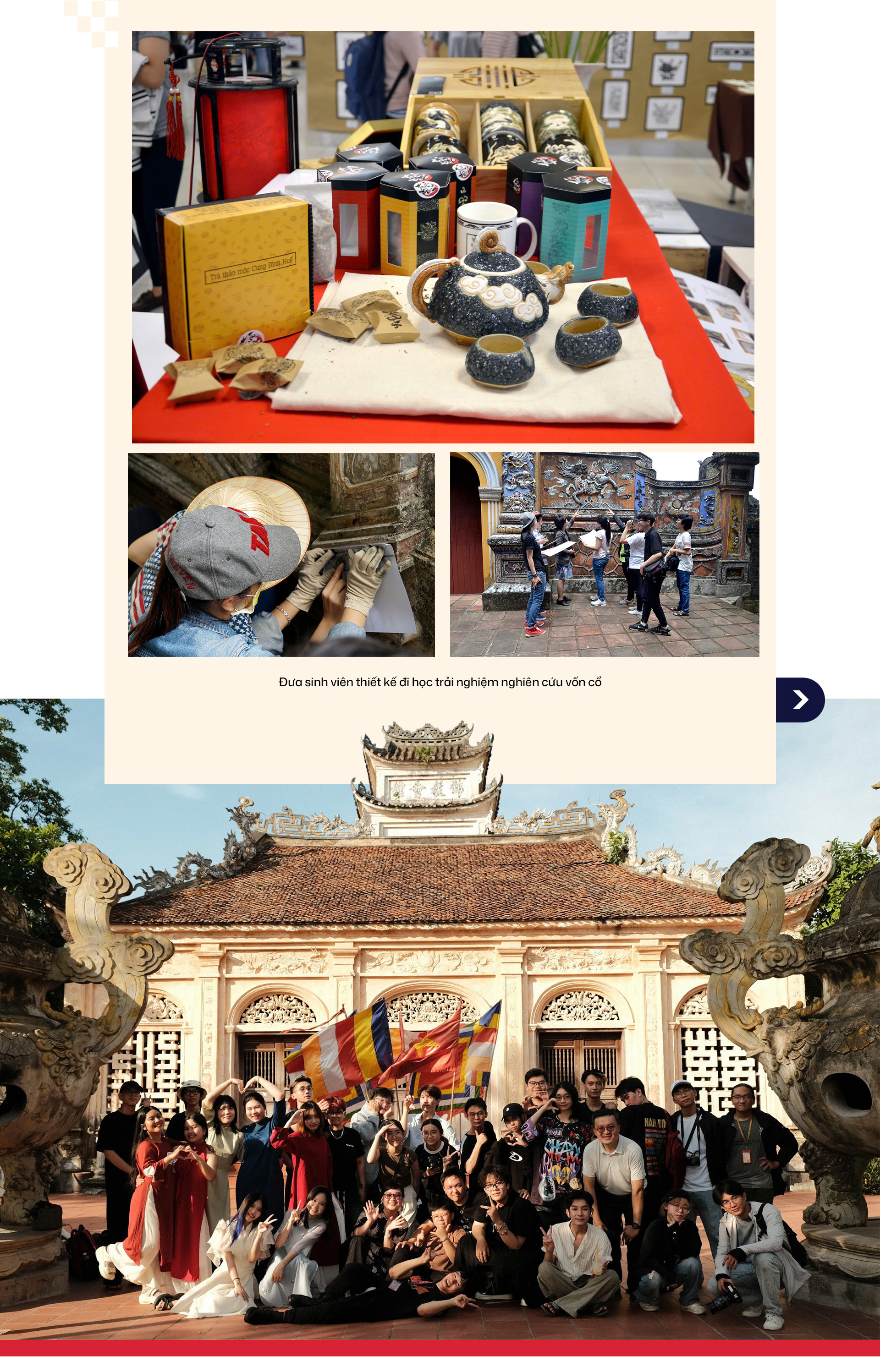Thế nhưng khi học trải nghiệm, các bạn ghi chép, làm thiết kế cộng đồng, tư duy về cách sắp đặt, ứng dụng, môi trường, cộng đồng, hiểu được thế nào là văn hóa tinh thần dân tộc chứ không phải chỉ để chiêm ngưỡng một sản phẩm rồi về thiết kế.