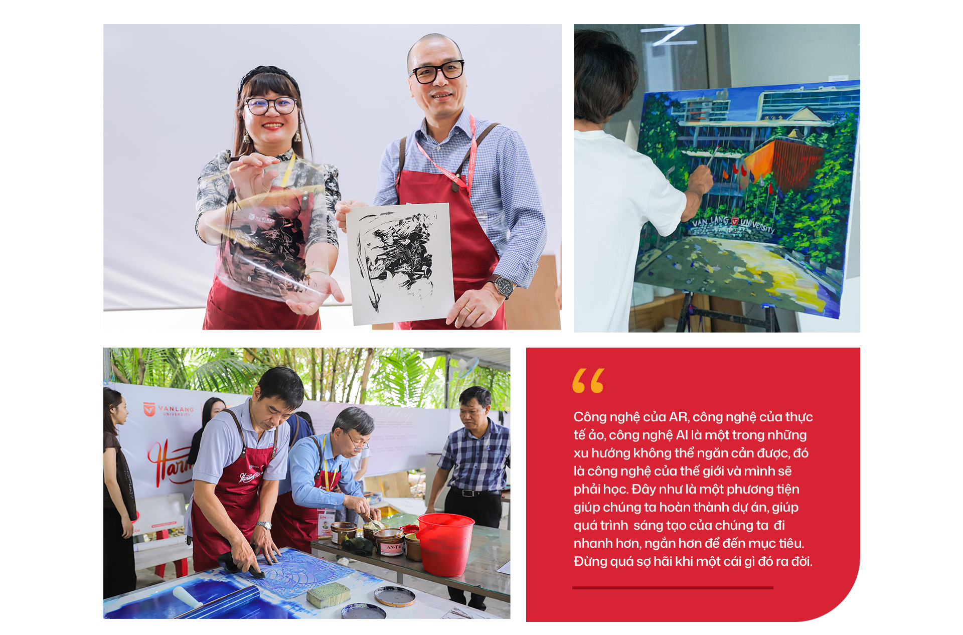 Tư duy này ở nước ngoài đã triển khai rất nhiều và mình phải hướng cho tất cả mọi người thấy cái lợi đó. Khoa mời các chuyên gia ở nước ngoài là họa sĩ, điêu khắc và nghệ thuật sắp đặt đến Văn Lang. Họ mang đến cách thức, tư duy rất hay thì mình học hỏi từ người ta rồi vô tình tạo ra cho các thầy cô một niềm hứng khởi, một cách nhìn mới, một tư duy mới, từ đó thầy cô đồng cảm và đồng hành cùng mình.